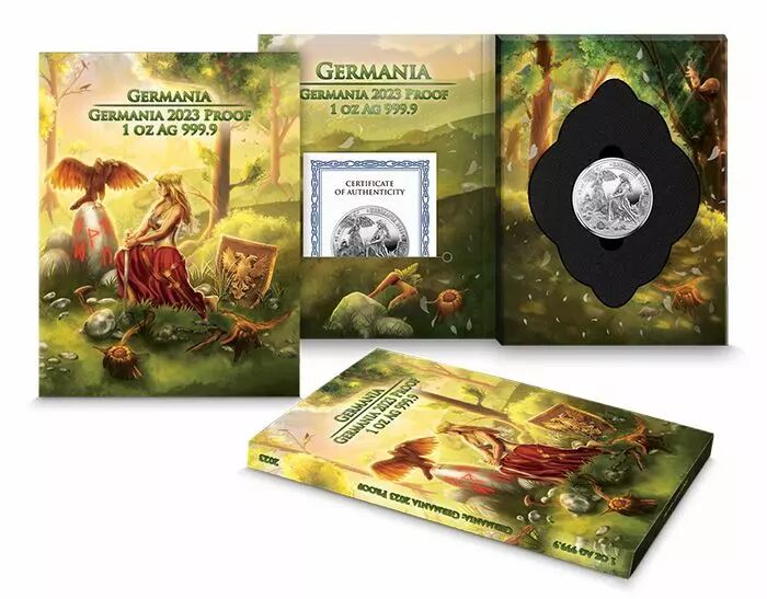 Germania, l'héroïne de la série phare de Germania Mint, poursuit son voyage en 2023 et commence une aventure sur le continent. La terre inexplorée est remplie non seulement d'une végétation luxuriante, mais aussi de signes mystérieux - des runes magiques gravées dans la roche, porteuses de prophéties..... Que signifient-elles et d'où viennent-elles ? C'est une question dont nous connaîtrons tous bientôt la réponse.