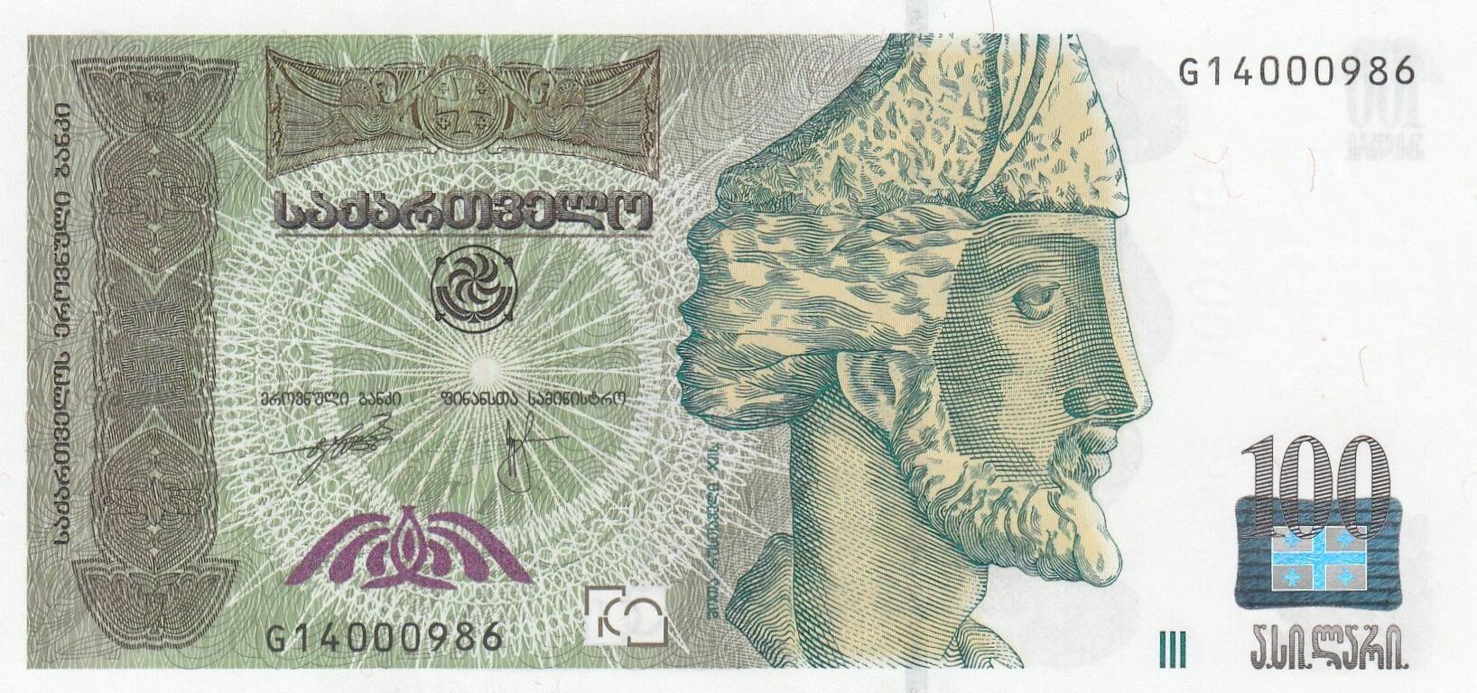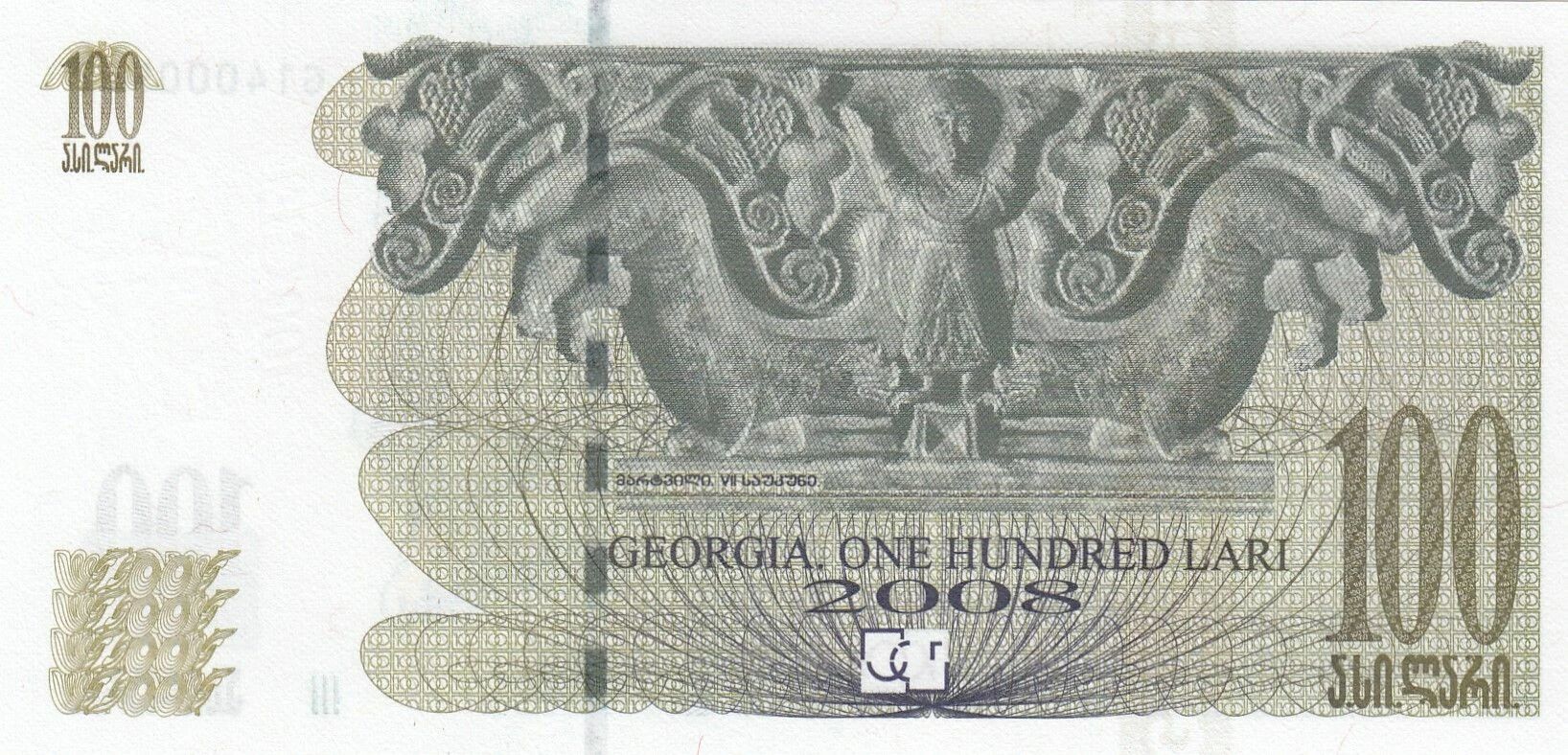 Home > World Banknotes > European Banknotes > Georgia > 100 Lari - Portrait of Shota Rustaveli - Martvili Church - 2004-2014 - G Series