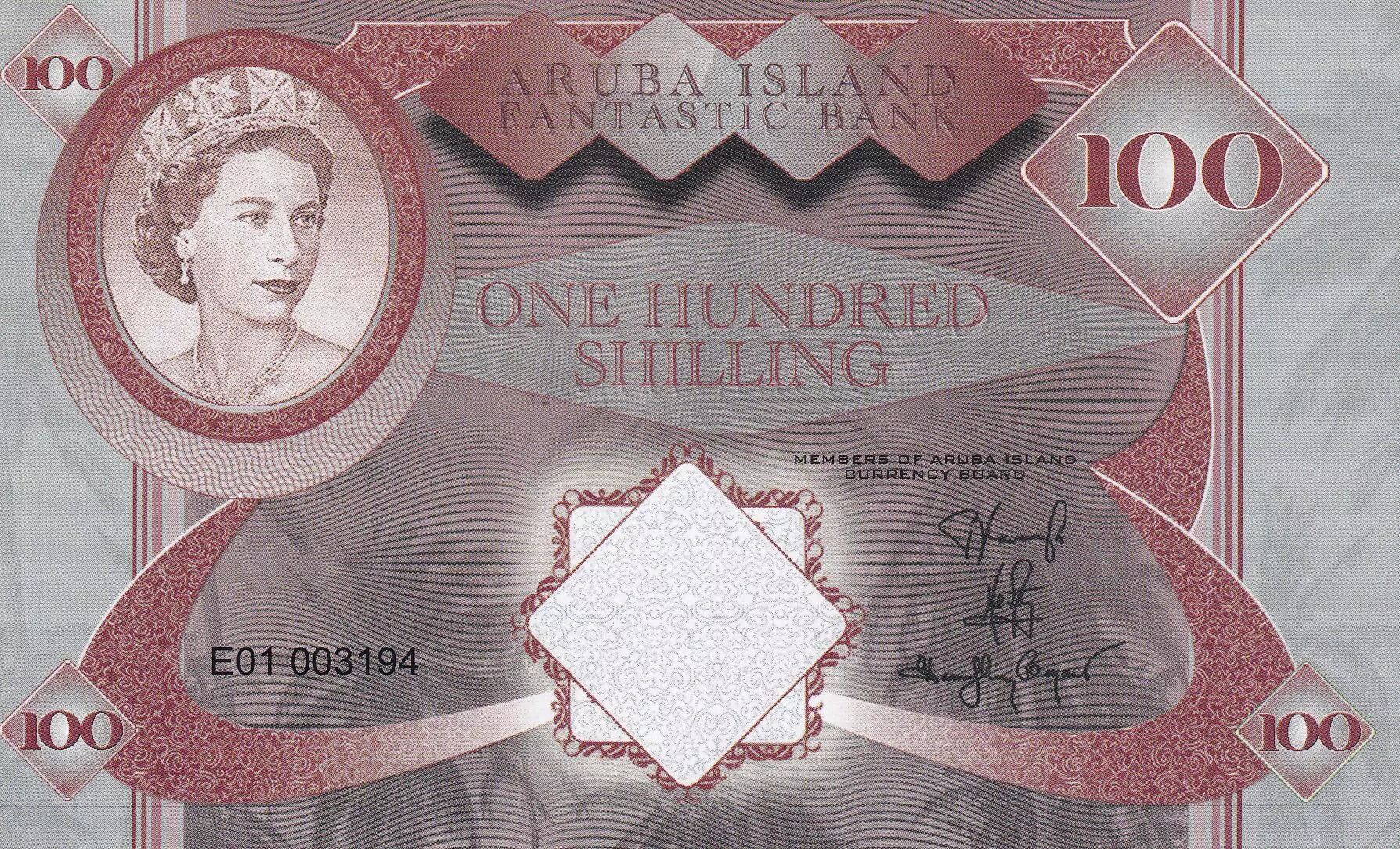 Billet 100 Shilling - Aruba Island Fantastic Bank - Elisabeth II - Chevaux, Eglise