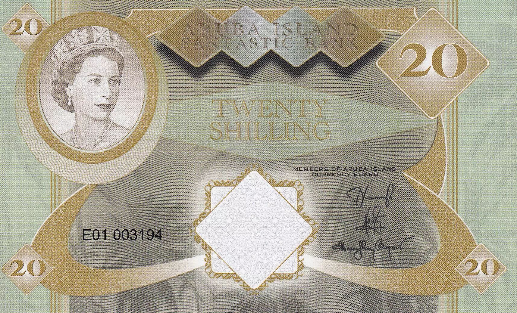 Accueil > Archivage > 20 Shilling - Aruba Island Fantastic Bank - Elisabeth II - Crabe, plage