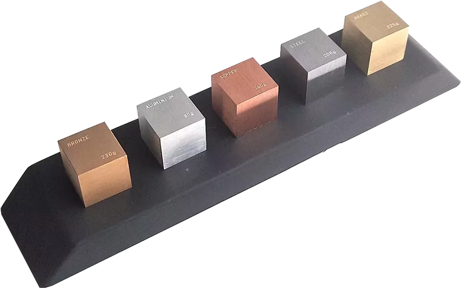 5 Cubes de densité - Cuivre, Bronze, Aluminium, Acier, Laiton