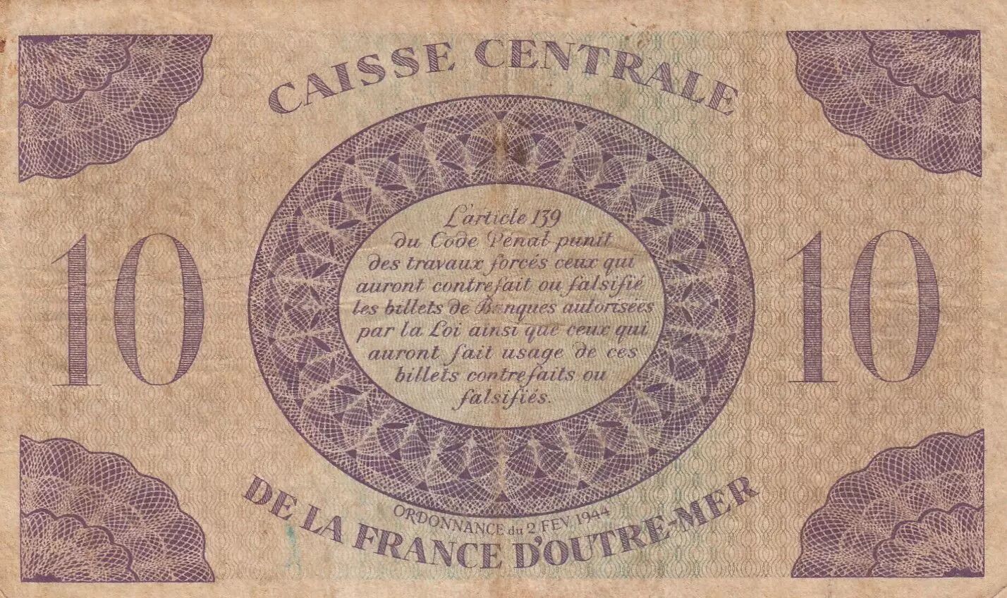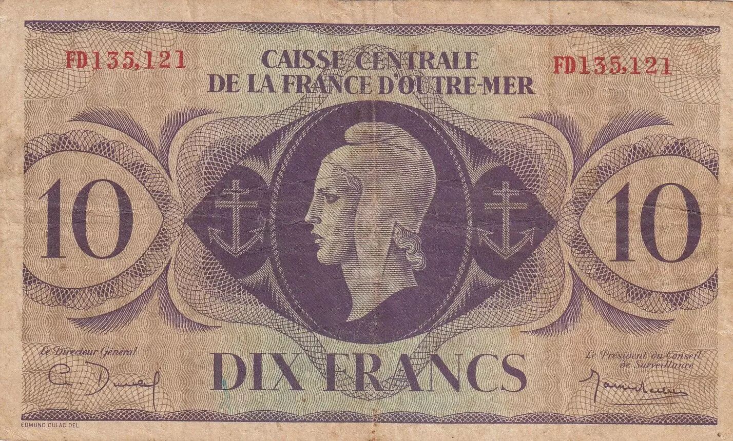 Banknote AEF 10 Francs - Marianne - 1944 - Serial FD135.121