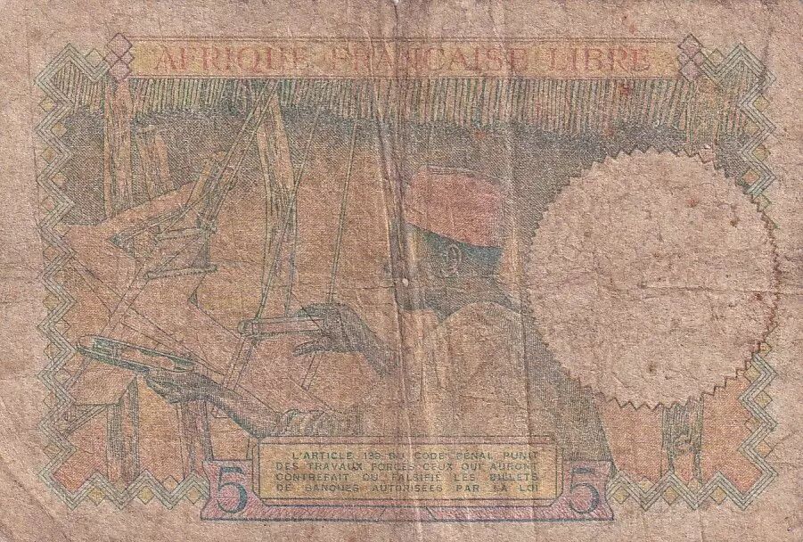 Accueil > Archivage > archivage-Billets du Monde > AEF 5 Francs - Afrique Française Libre - 1941 - Série A 25