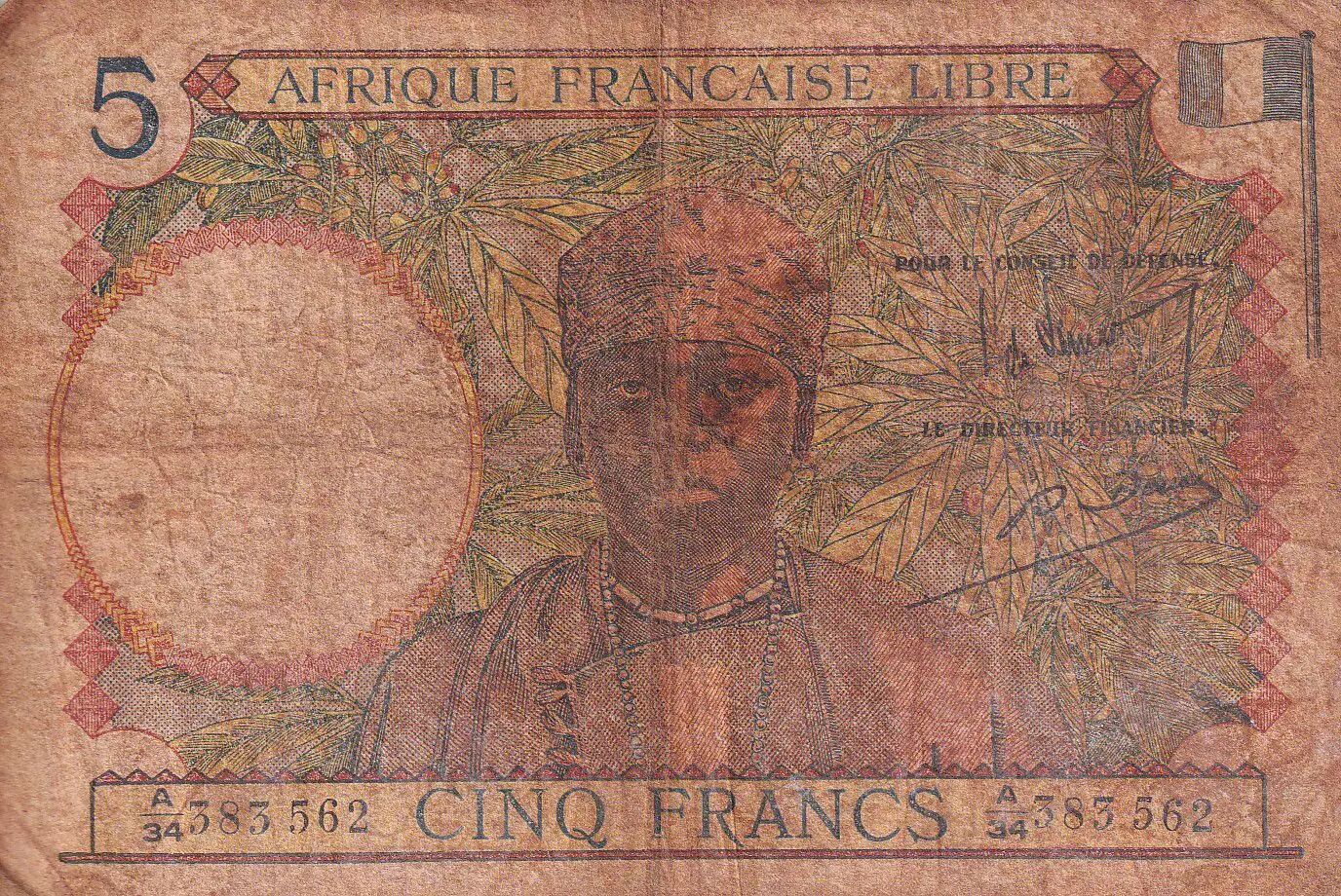 Accueil > Archivage > AEF 5 Francs Afrique Française Libre - 1941 - Série A 34 - P.6