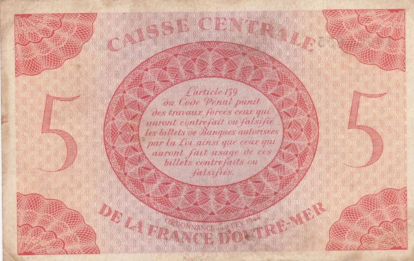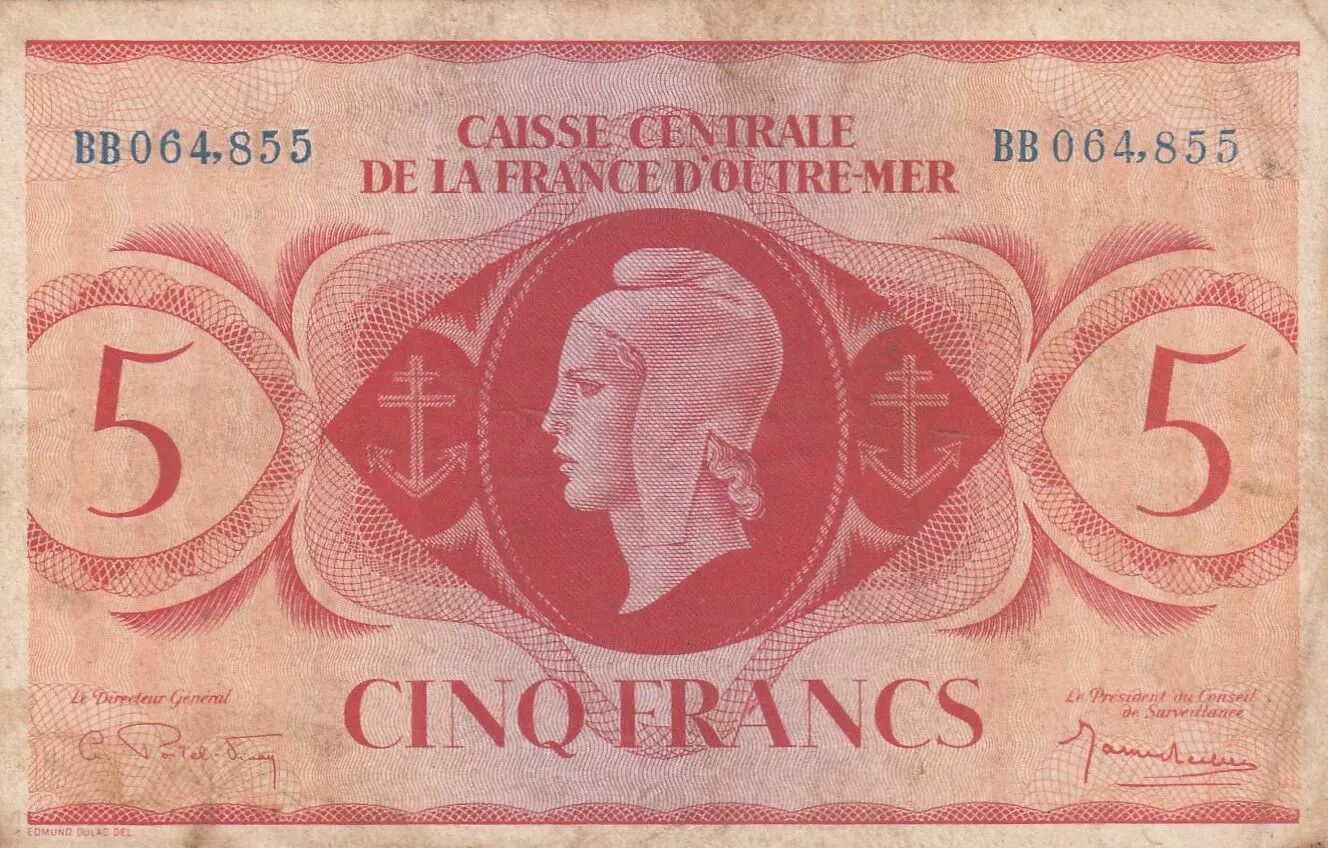 Home > > AEF 5 Francs - Marianne - 1944 - Serial BB-06,4855 - P.15b