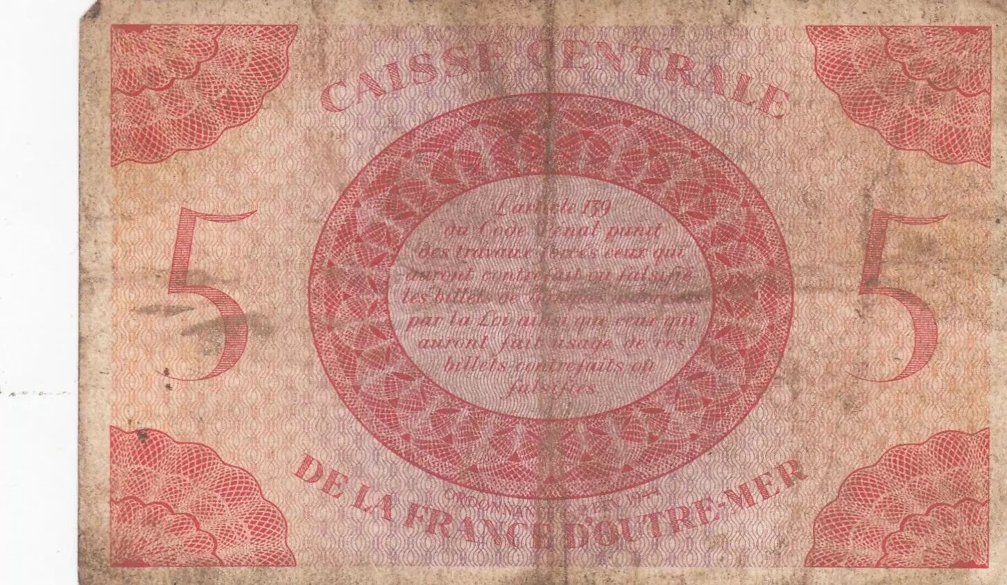 Banknote AEF 5 Francs - Marianne - 1944 - Serial BB-389.256 - P.15b