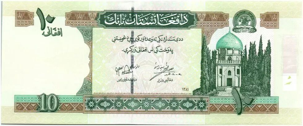 Billet Afghanistan 10 Afghanis Mosquée - Arche de la Victoire 2002