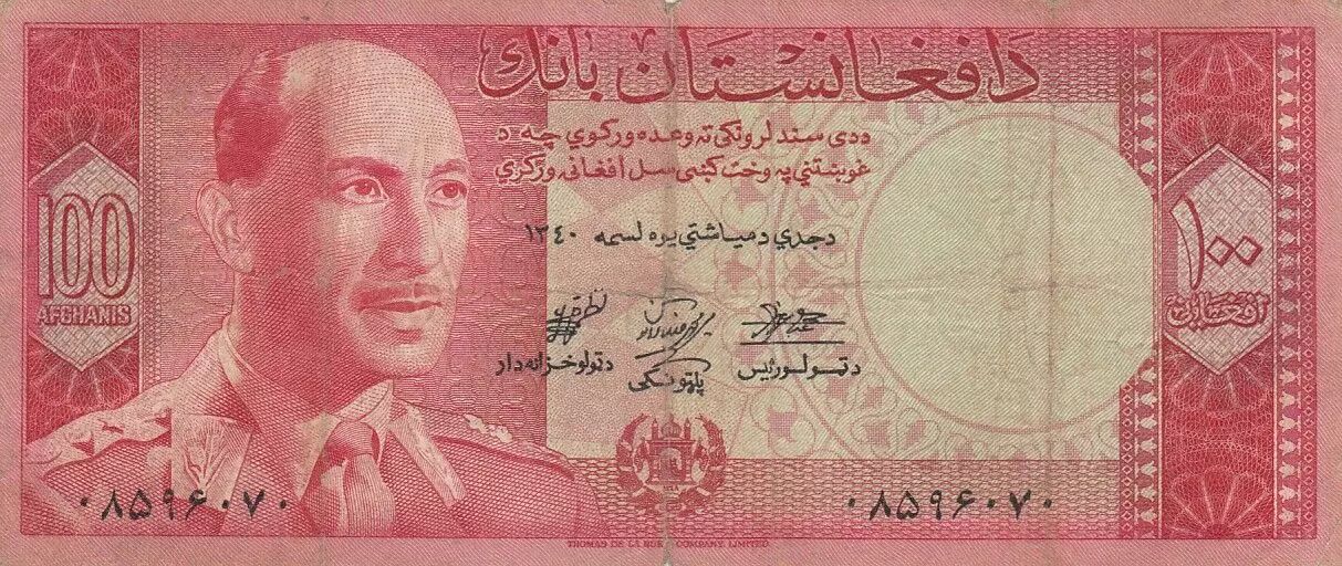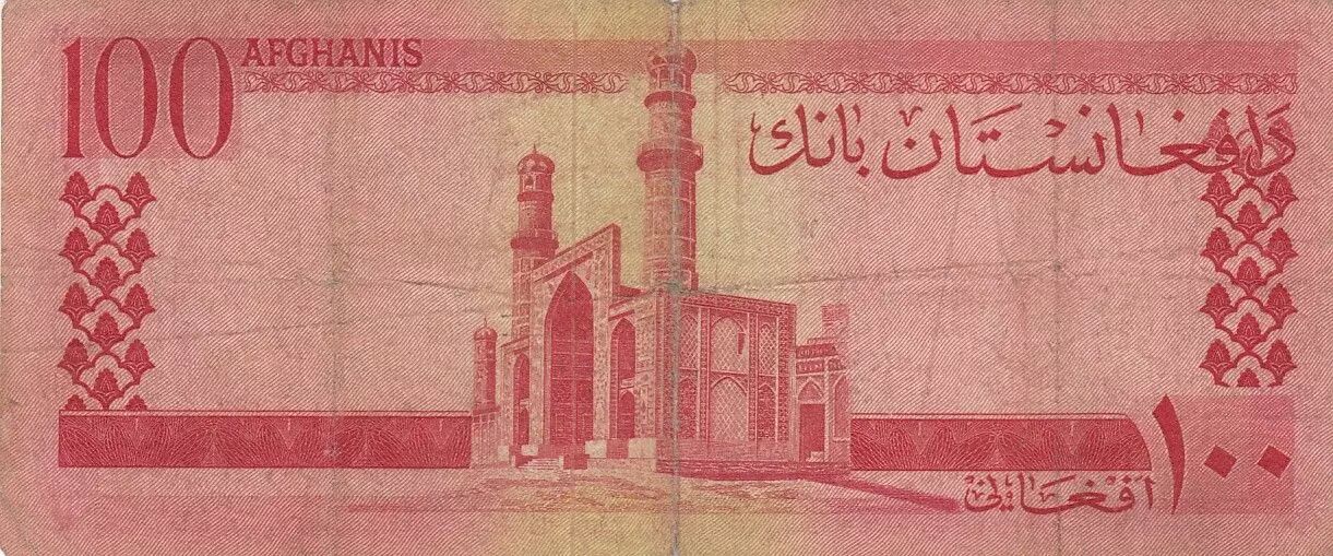 Billet Afghanistan 100 Afghanis - Roi Muhammad Zahir - Mosquée - 1961