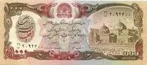 The front of the banknote features a representation of the Blue Mosque of Mazar-e-Sharif, an important pilgrimage site and a remarkable example of Islamic architecture. The image of the mosque highlights its intricate domes, minarets, and courtyards adorned with mosaics. Inscriptions in Dari or Pashto script, the official languages of Afghanistan, also appear on the front, likely indicating the value of the banknote and the name of the issuing bank.