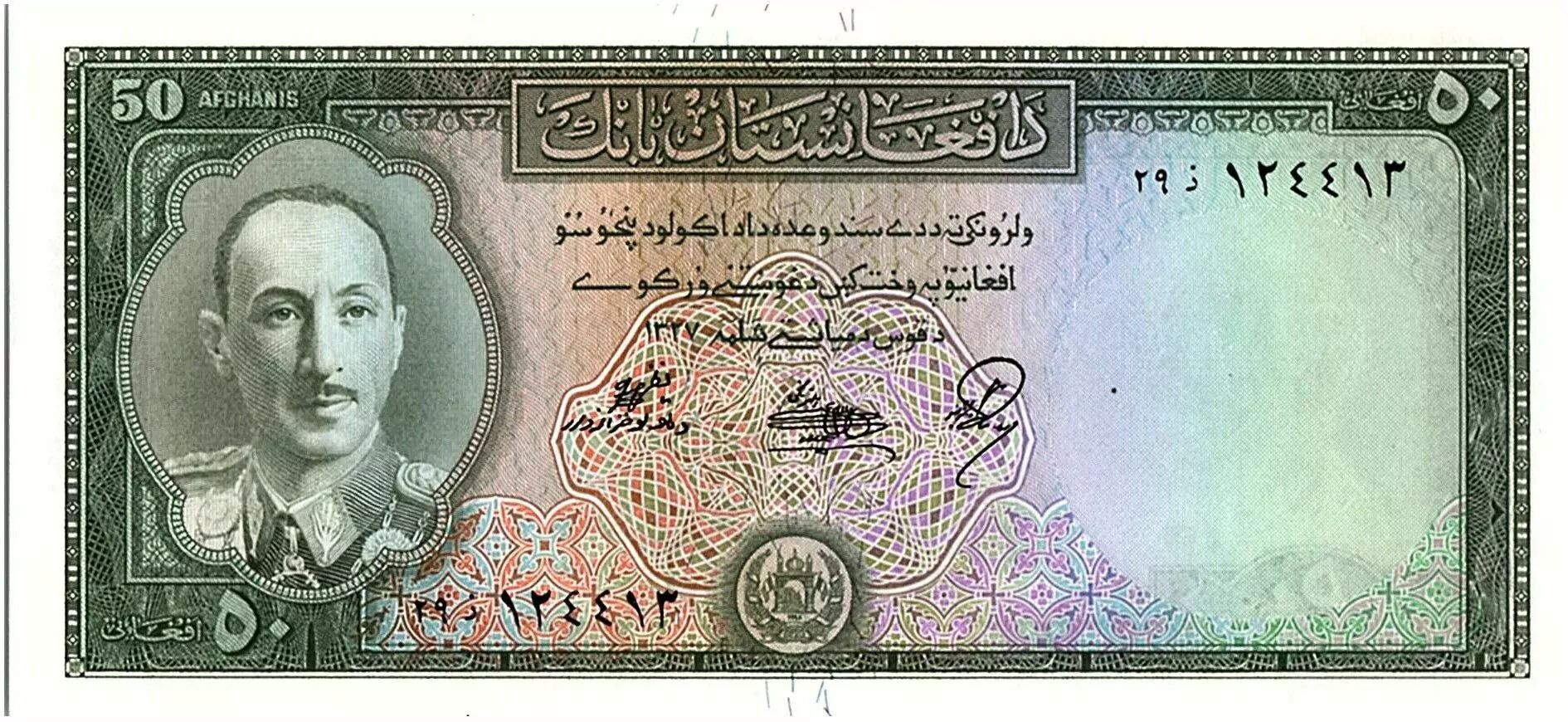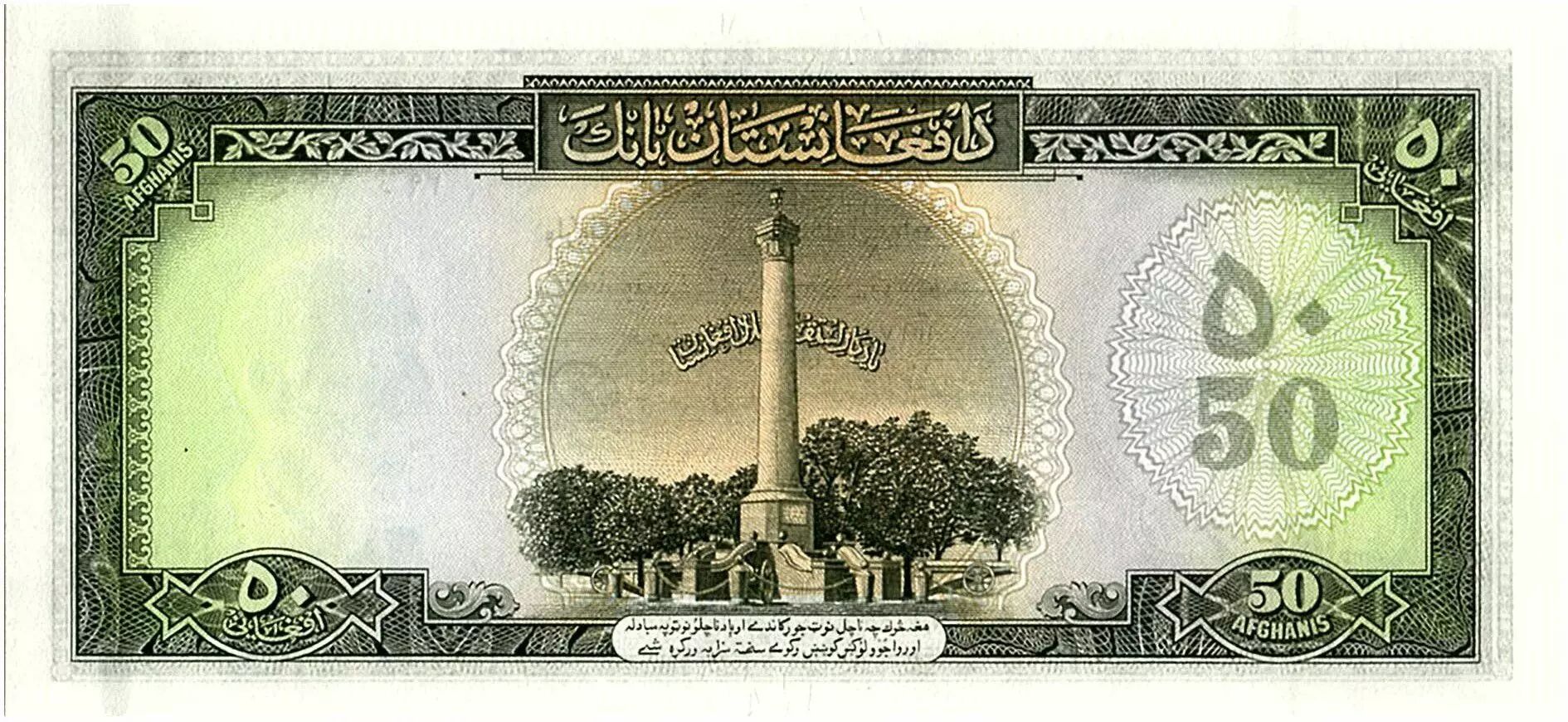 Home > World Banknotes > Asian Banknotes > Afghanistan > Afghanistan 50 Afghanis - Roi Muhammad Zahir - Monument - 1948
