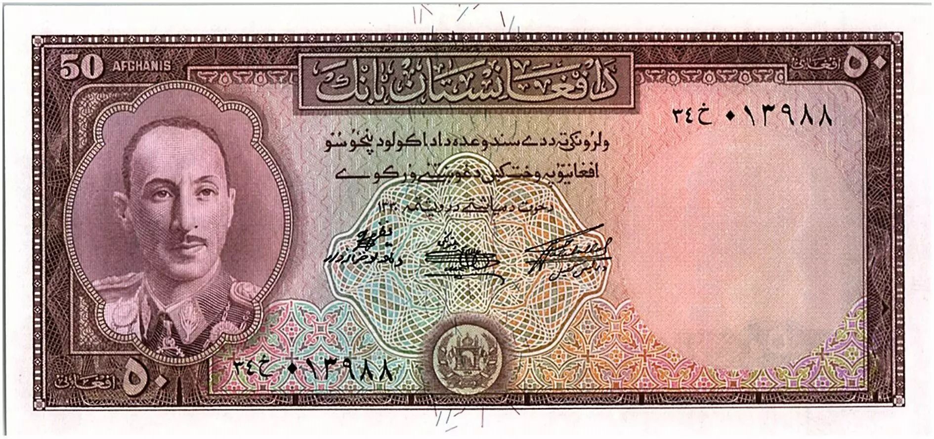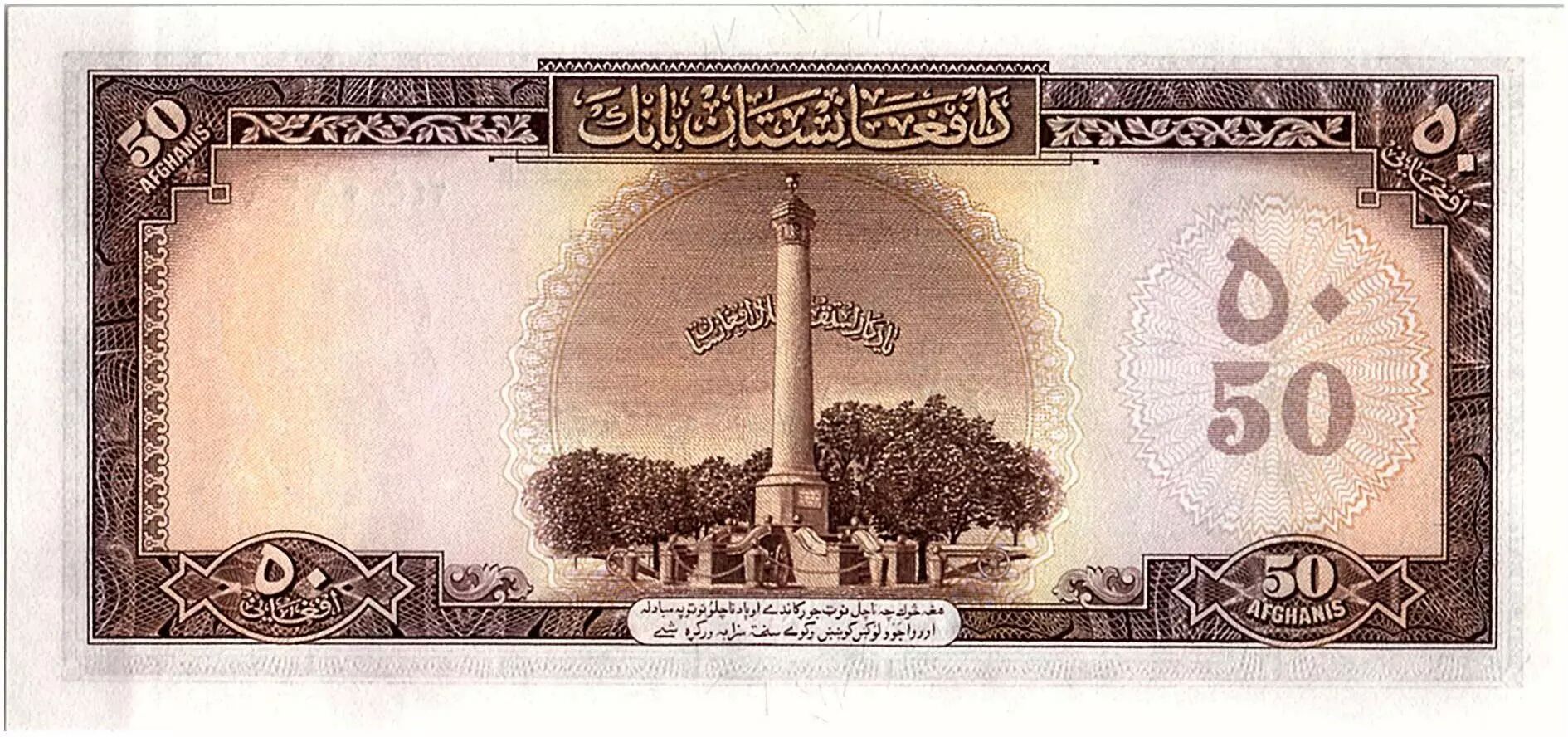 Accueil > Billets du Monde > Billets d'Asie > Afghanistan > Afghanistan 50 Afghanis - Roi Muhammad Zahir - Monument - 1951