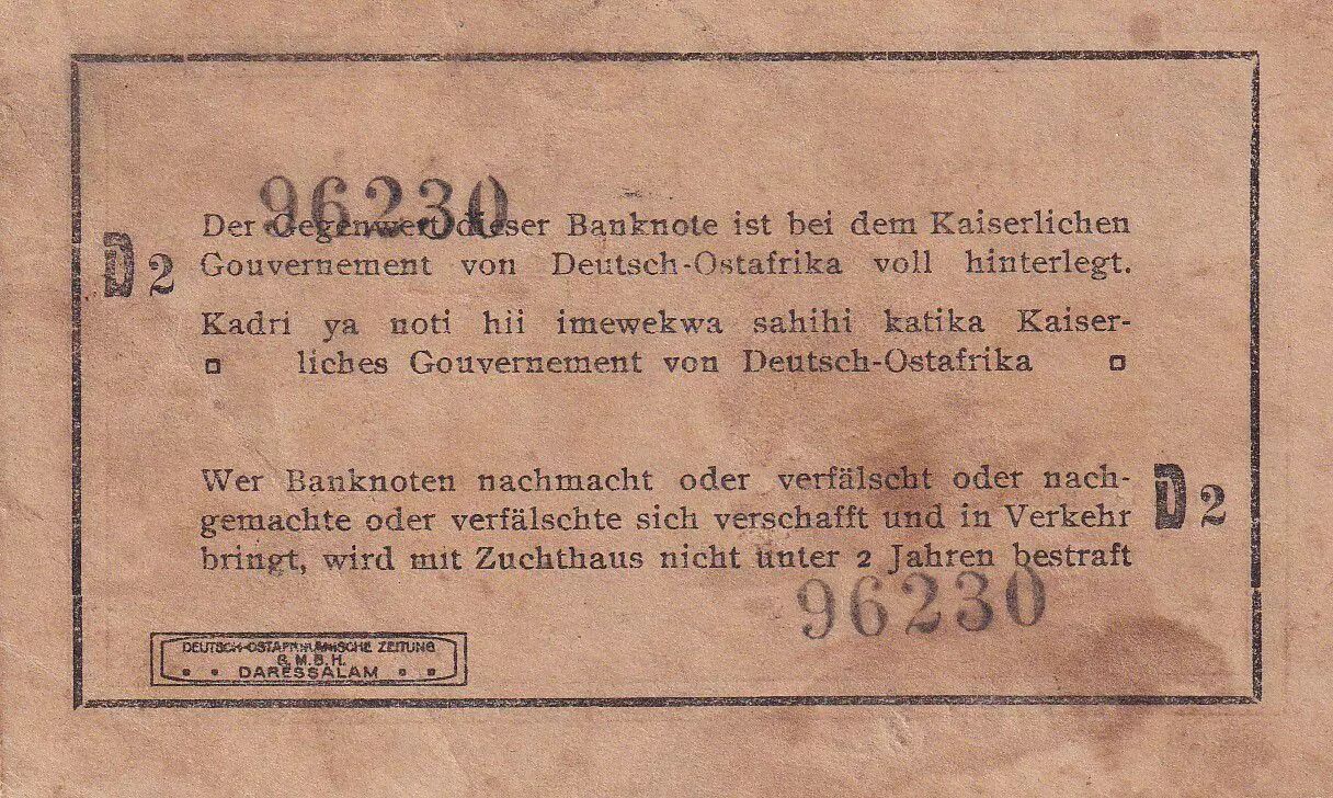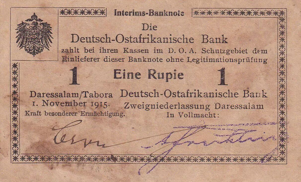 Billet Afrique de l'Est Allemande 1 Roupie - Beige et noir - 1915 - Série D.2 - P.9Ab