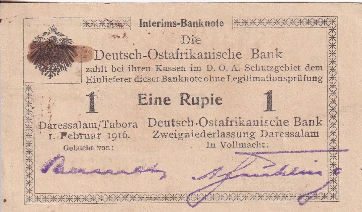 Billet Afrique de l'Est Allemande 1 Roupie - Beige et noir - 1916 - Série R.3 - P.20a
