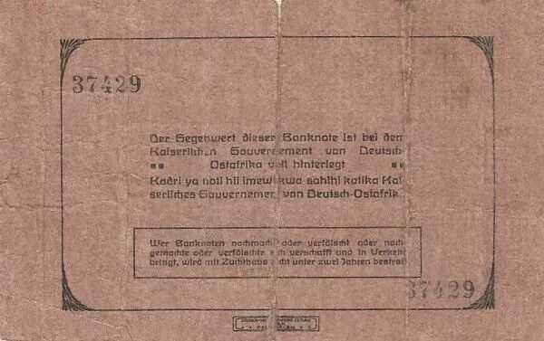 Accueil > Archivage > archivage-Billets du Monde > Afrique de l'Est Allemande 20 Rupien - Afrique de l'Est Allemande - 1915