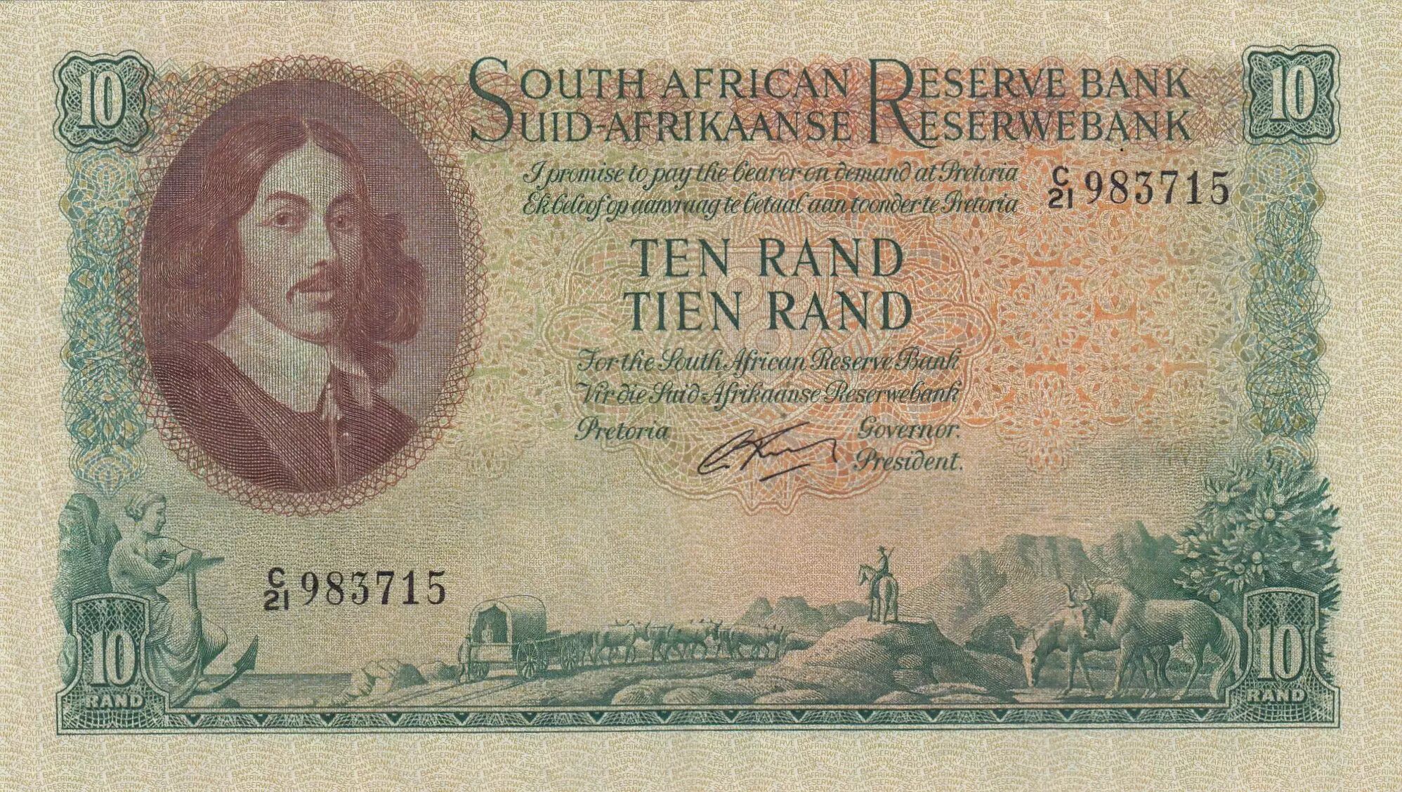 Billet Afrique du Sud 10 Rand - Jan Van Riebeeck - Mine - 1962 - Série C.21