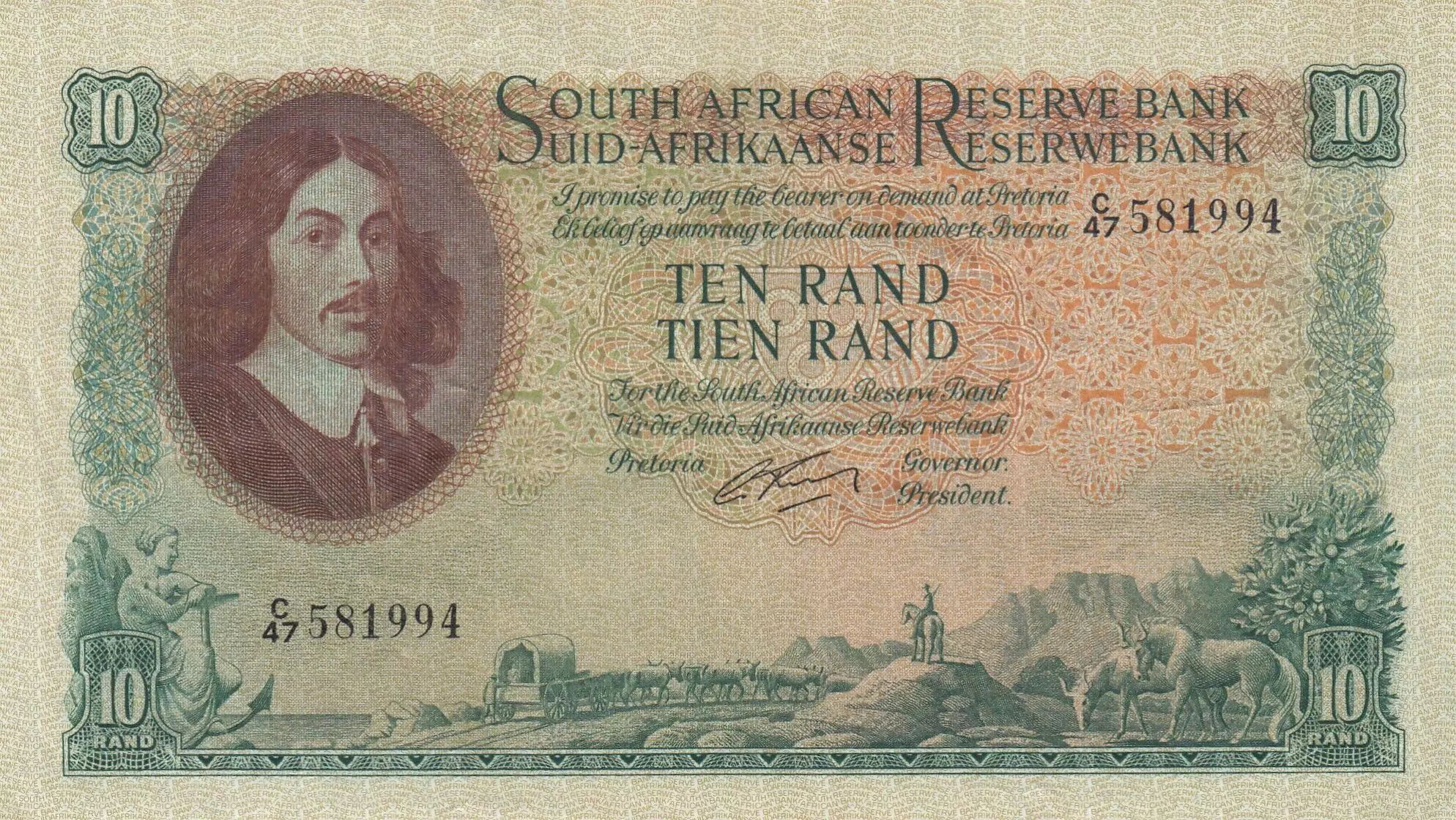 Billet Afrique du Sud 10 Rand - Jan Van Riebeeck - Mine - 1962 - Série C.47