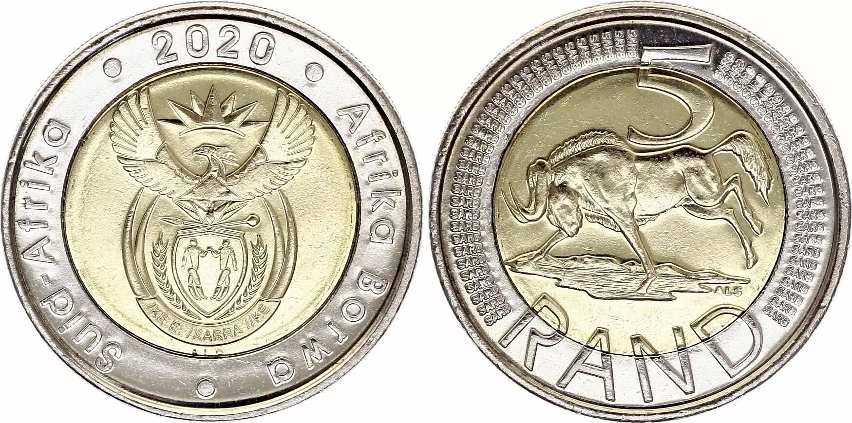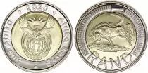 Pièce Afrique du Sud 5 Rand - Armoiries - Gnou - 2020 - Bimétallique