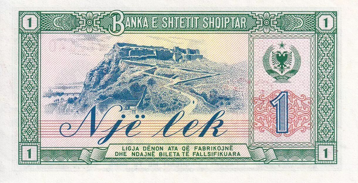Home > > Albania 1 Lek - Peasant couple - Fortress - Specimen - 1976 - Serial CL - P.40s2