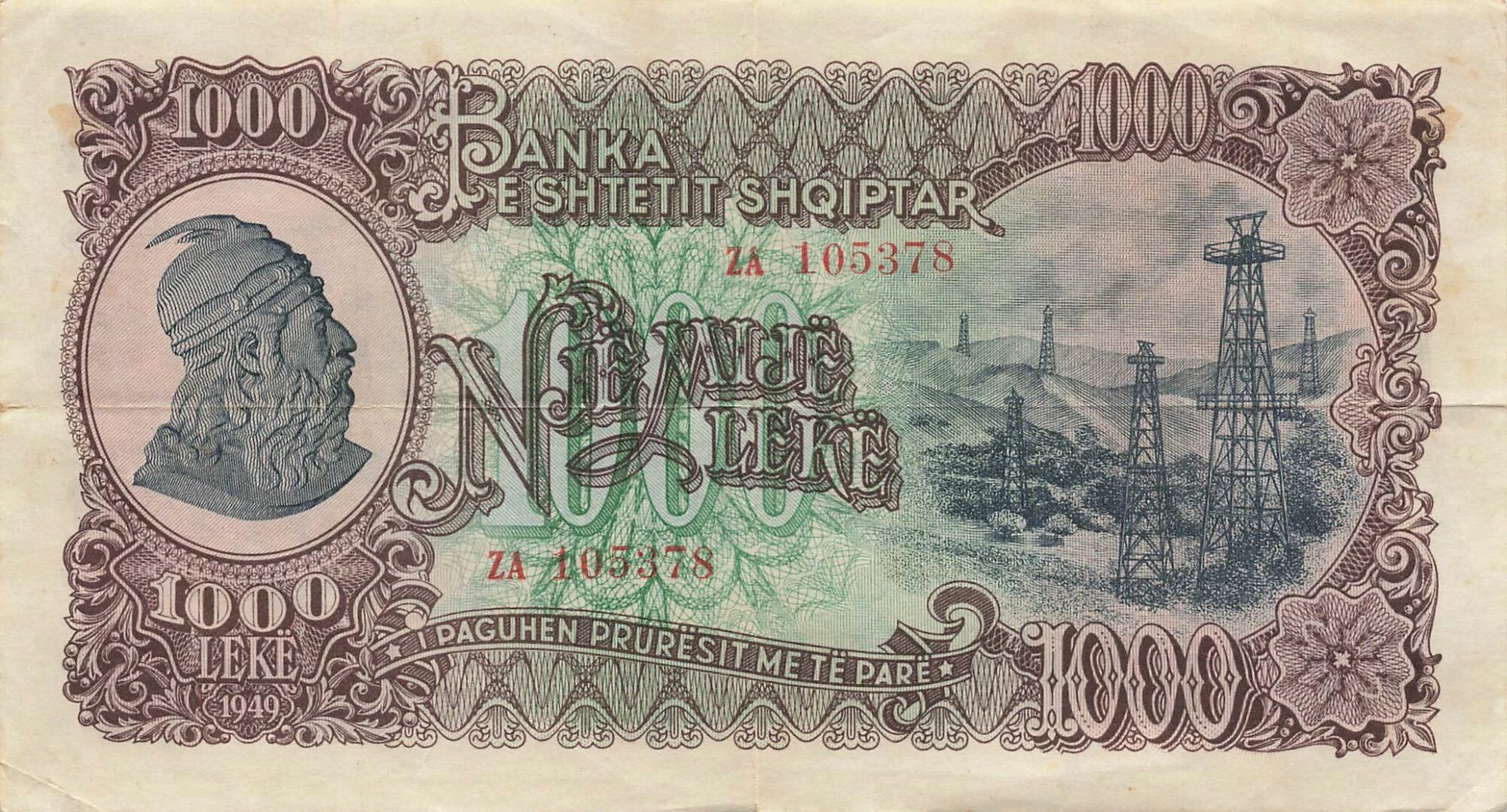 Home > World Banknotes > European Banknotes > Albania > Albania 1000 Leke - 1949 - Remplacement - P.32