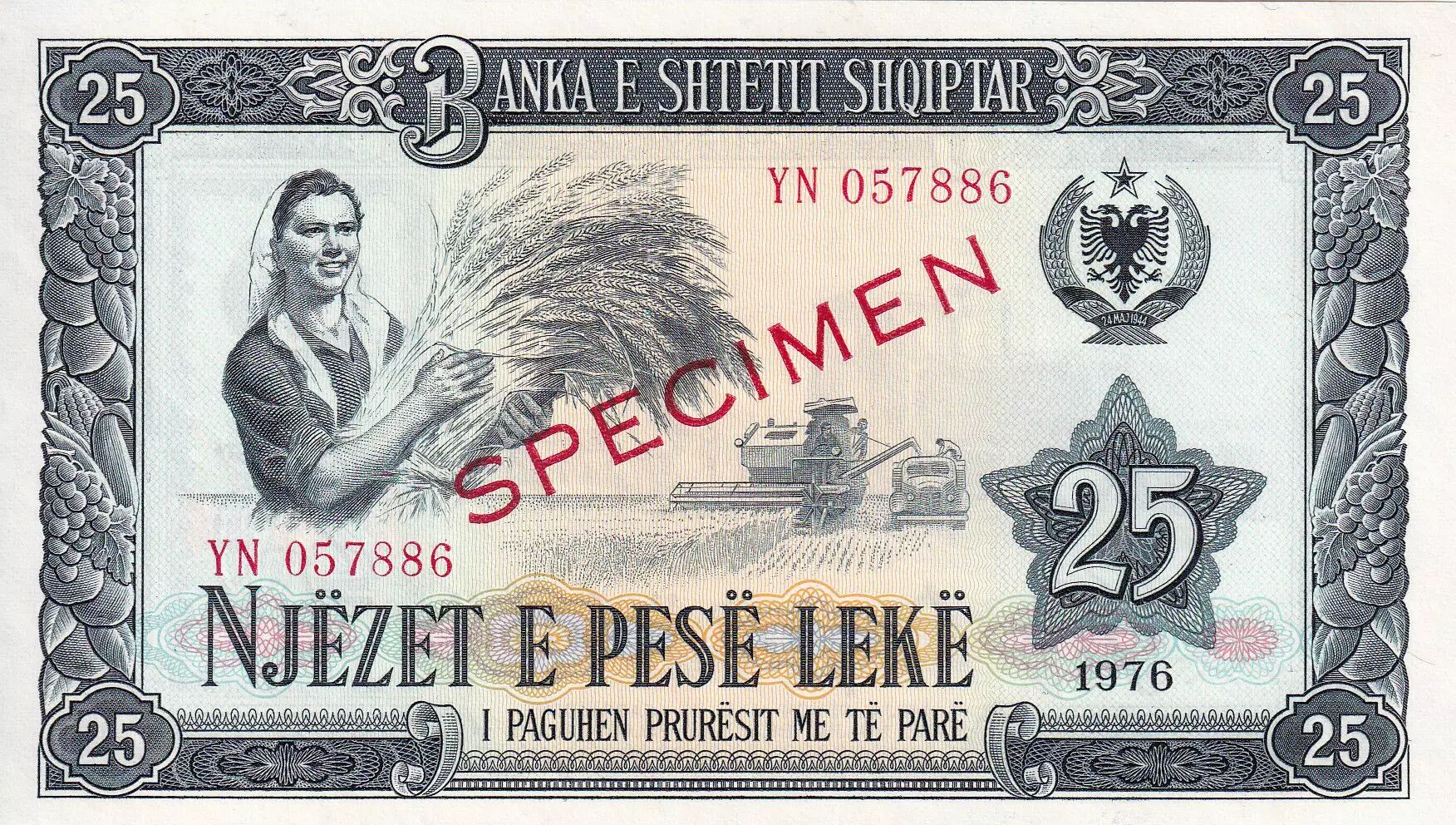 Home > > Albania 25 Lekë - Peasant - Agriculture - Specimen - 1976 - Serial YN - P.44s2