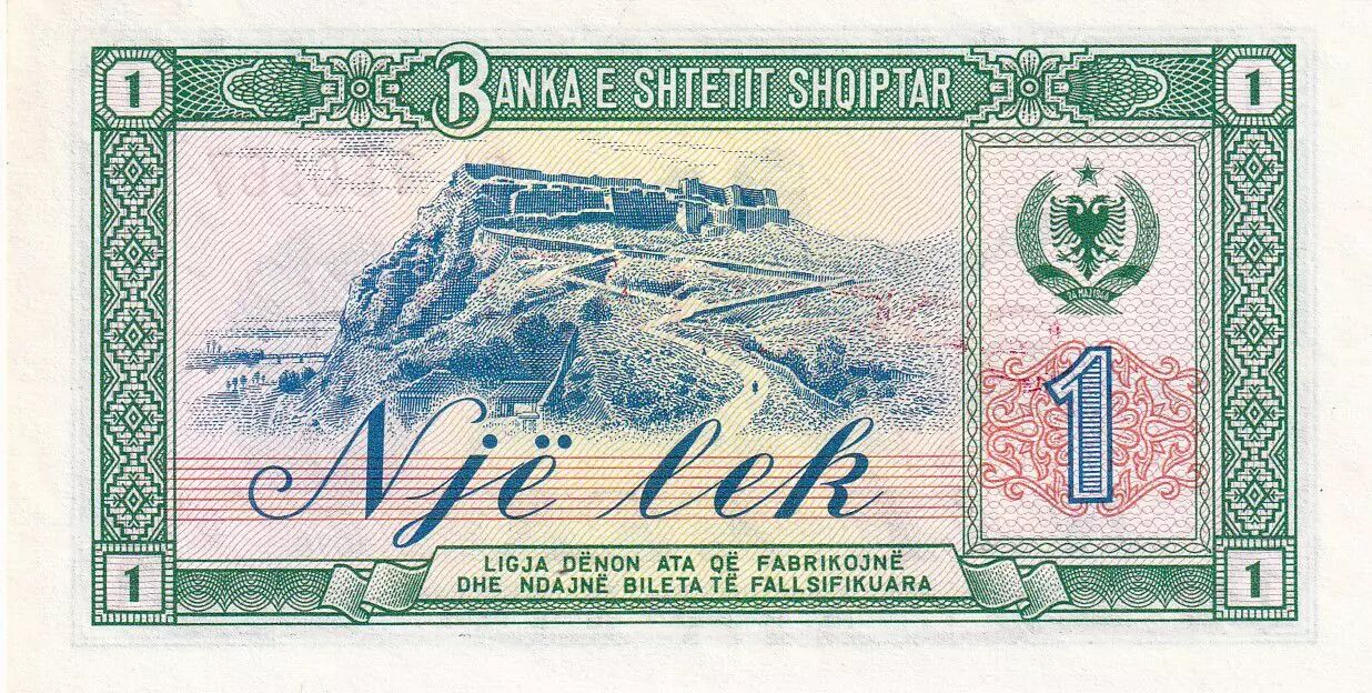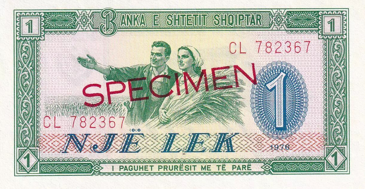 Billet Albanie 1 Lek - Couple de paysans - Forteresse - Spécimen - 1976 - Série CL - P.40s2