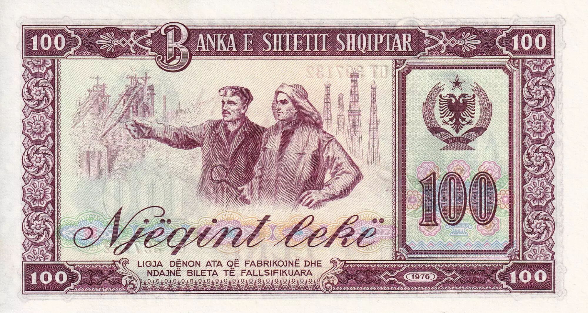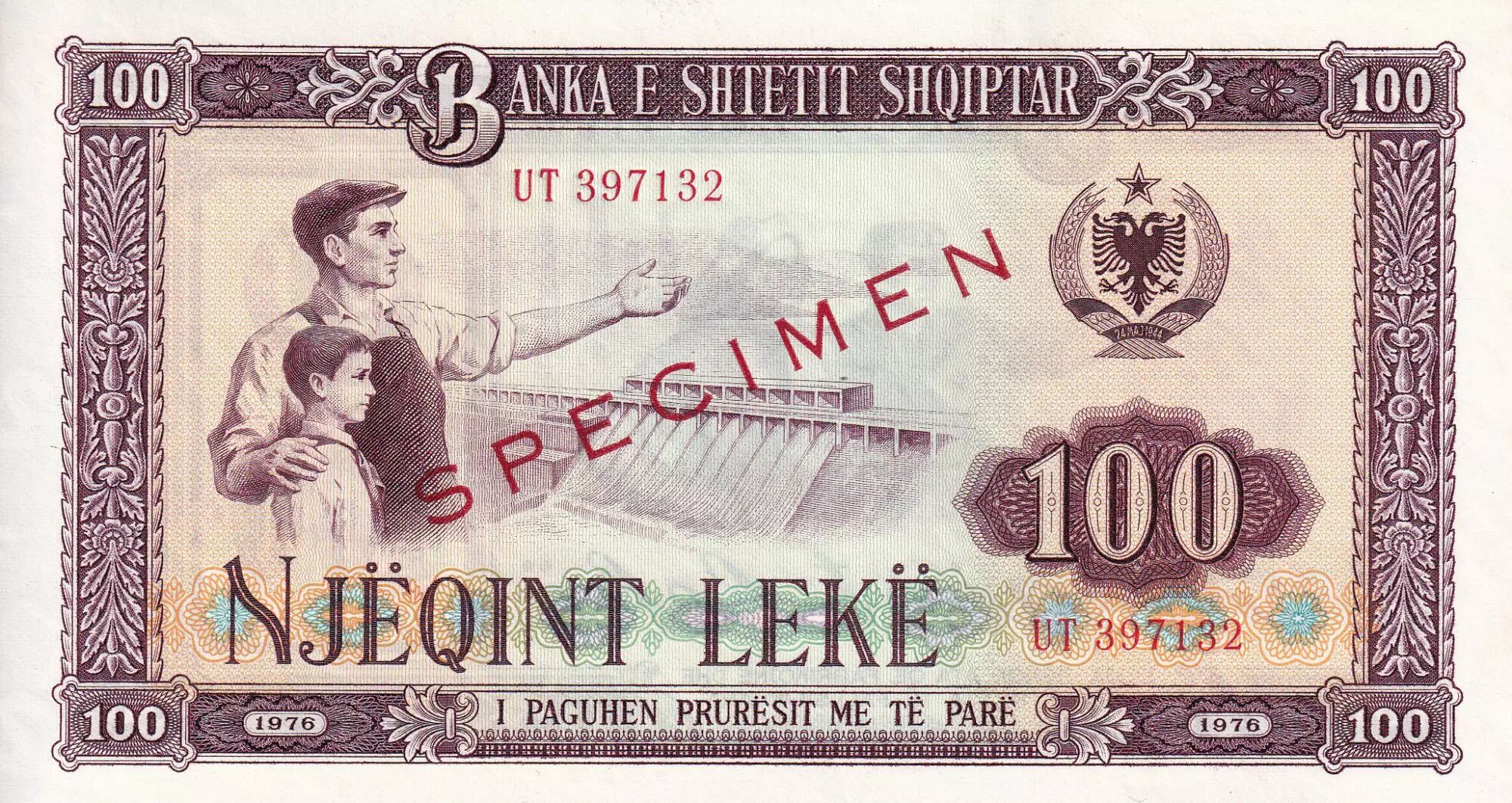 Billet Albanie 100 Lekë - Barrage - Travailleurs - Spécimen - 1976 - Série UT - P.46s2