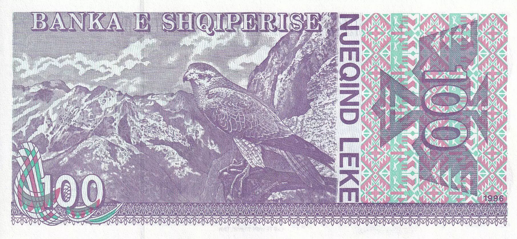 Billet Albanie 100 Léké - Luftetari Kombetar - Aigle - 1996 - Série CM - P.55c
