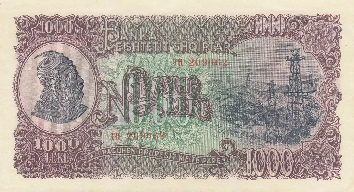 Billet Albanie 1000 Leké - Derricks - Mineur - Série TH - 1957