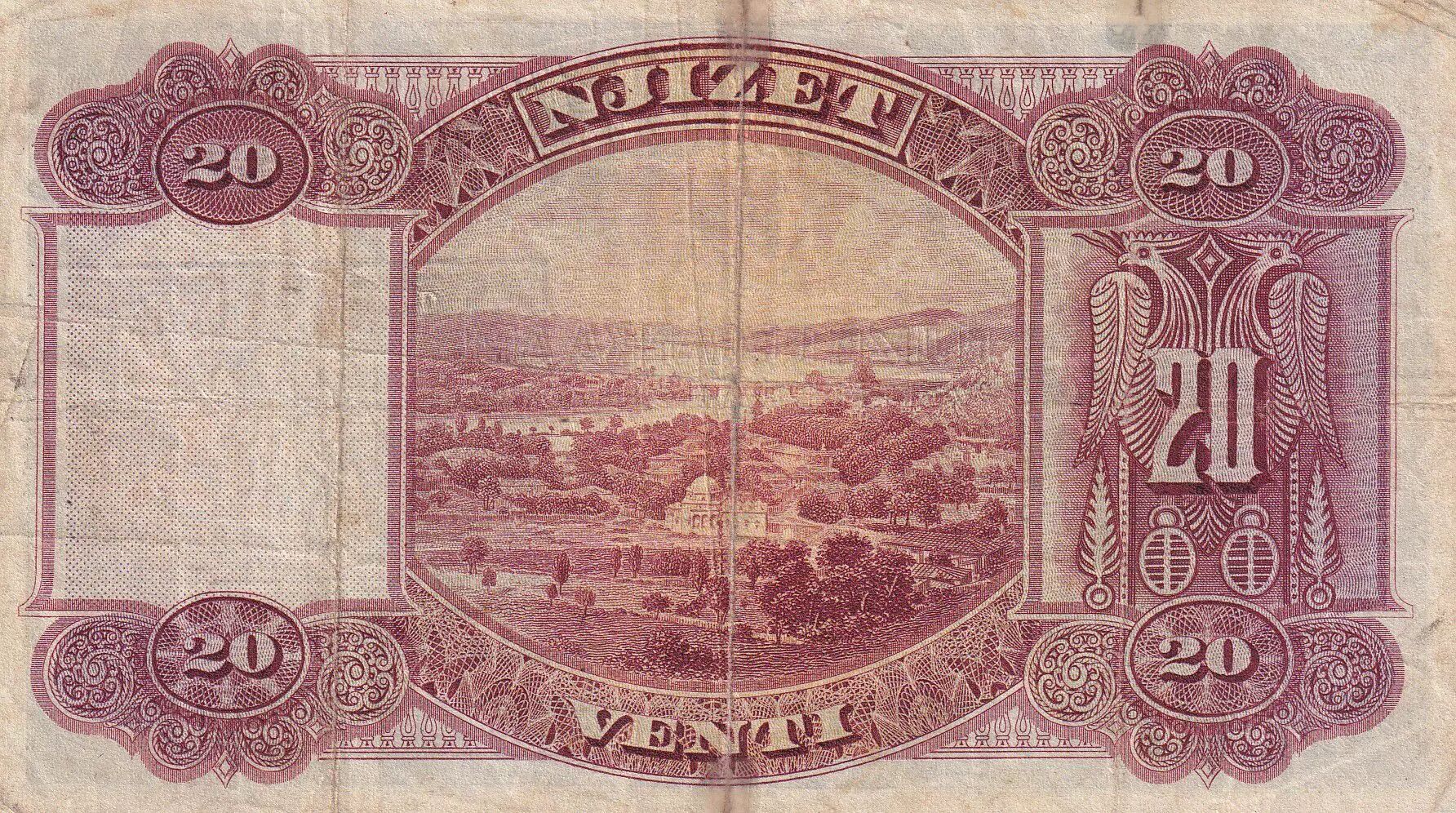 Billet Albanie 20 Franka Ari - Jeune homme - ND (1945) - Série H - P.12b