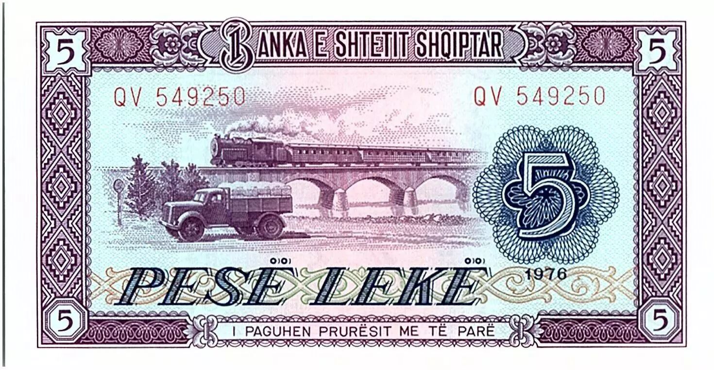 Billet Albanie 5 Leké - Train, Camion et Bateau - 1976