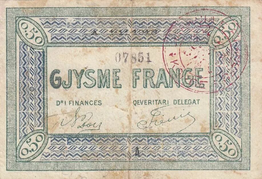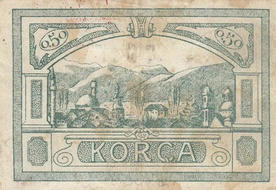 Billet Albanie 50 centimes Vert et Bleu, Village - 1918