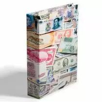Album avec 100 feuilles reliées transparentes pour 300 billets de banque jusqu'à 168 x 90 mm. Excellente protection des billets grâce à des pochettes sans plastifiant acide. Motifs de billets de banque du monde entier sur la couverture. Pratique et facile à entretenir.