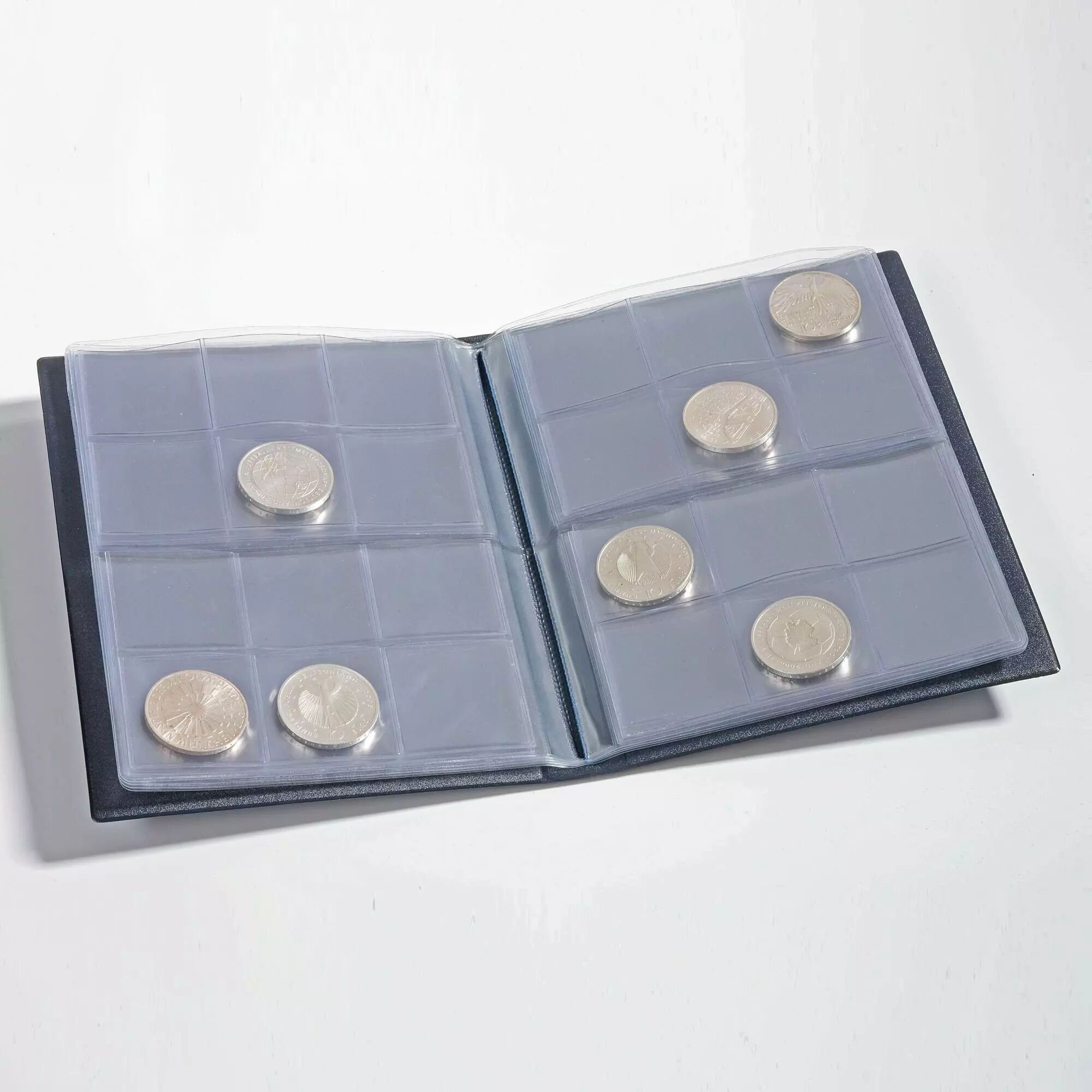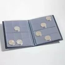 Album de poche pour monnaies idéal pour le transport ou pour les salons. Contenu : 8 feuilles à bandes en PVC sans plastifiant pour chacune 12 monnaies. Couverture ouatinée. Impression NUMIS couleur argent sur la couverture.