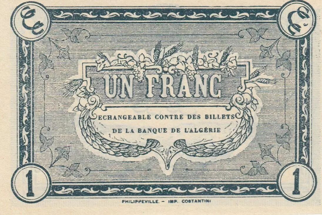 Banknote Algeria 1 Franc - Chambre de commerce of Constantine - 20-11-1922 - Serial E.6