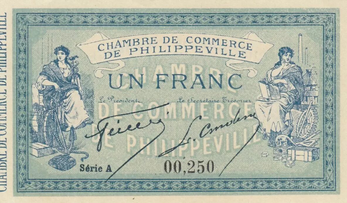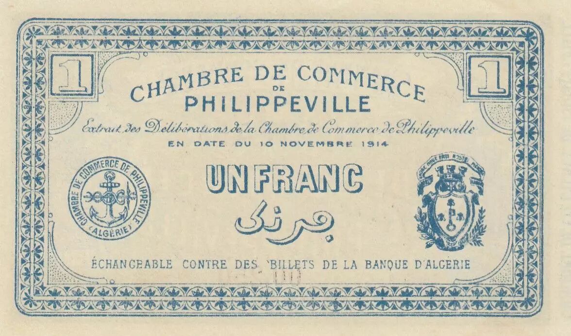 Banknote Algeria 1 Franc - Chambre de commerce of Philippeville - 10-11-1914 - Serial A 00.250
