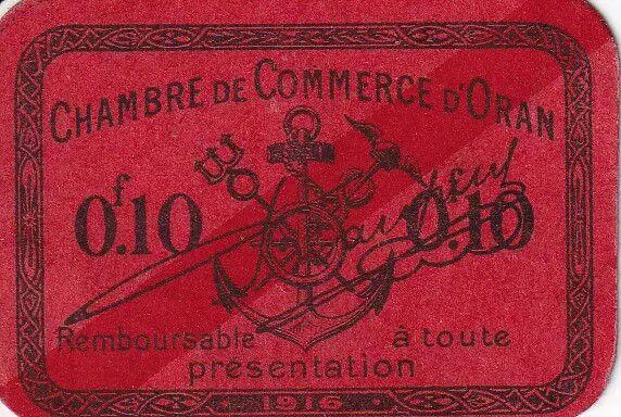 Banknote Algeria 10 Centimes - Chambre de Commerce d'Oran - 1916 - UNC - 141.49