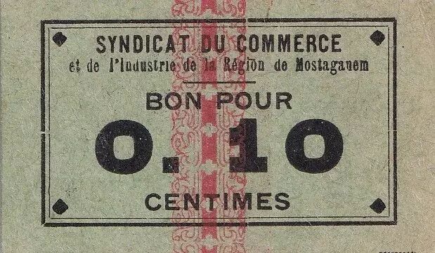 Banknote Algeria 10 Centimes Syndicat du Commerce et de l'Industrie -Mostaganem