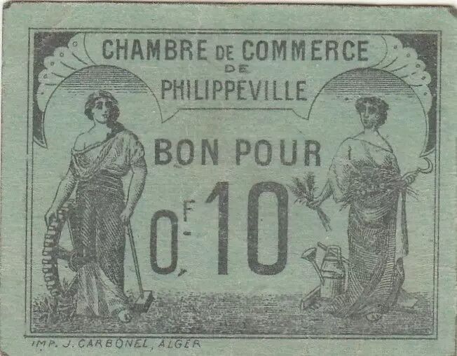 Banknote Algeria 10 Cents - Chambre de commerce of Philippeville - 15-11-1919 - Serial H