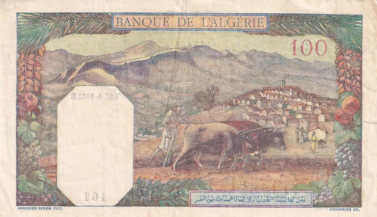 The 100 francs Algeria banknote from 1942, series A.988, bears witness to the historical and economic context of Algeria during this period. Its graphic design reflects the artistic influences of the time, while integrating elements specific to the country's identity.