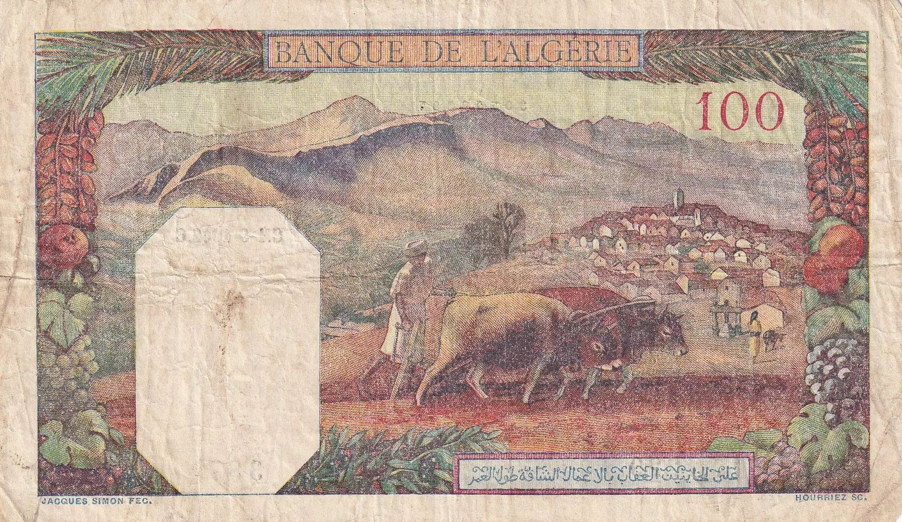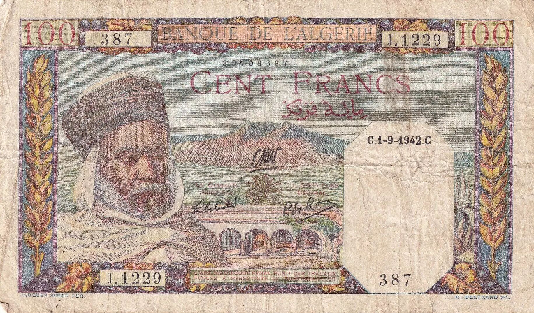 Home > > Algeria 100 Francs - Algerian - Serial J.891 - 1942 - Serial J.1229