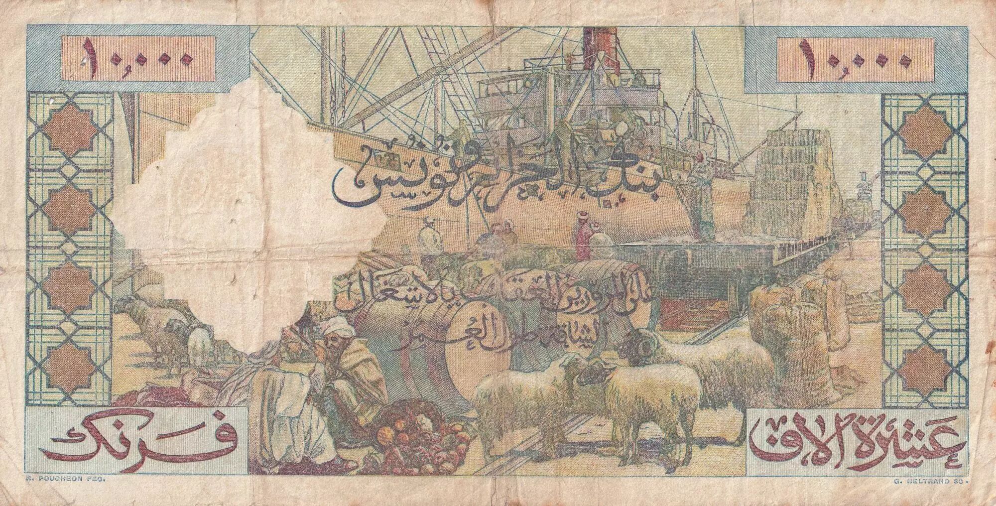 Banknote Algeria 10000 Francs - Sea gulls - Harbor - 26-06-1956 - Serial B.348 - P.110