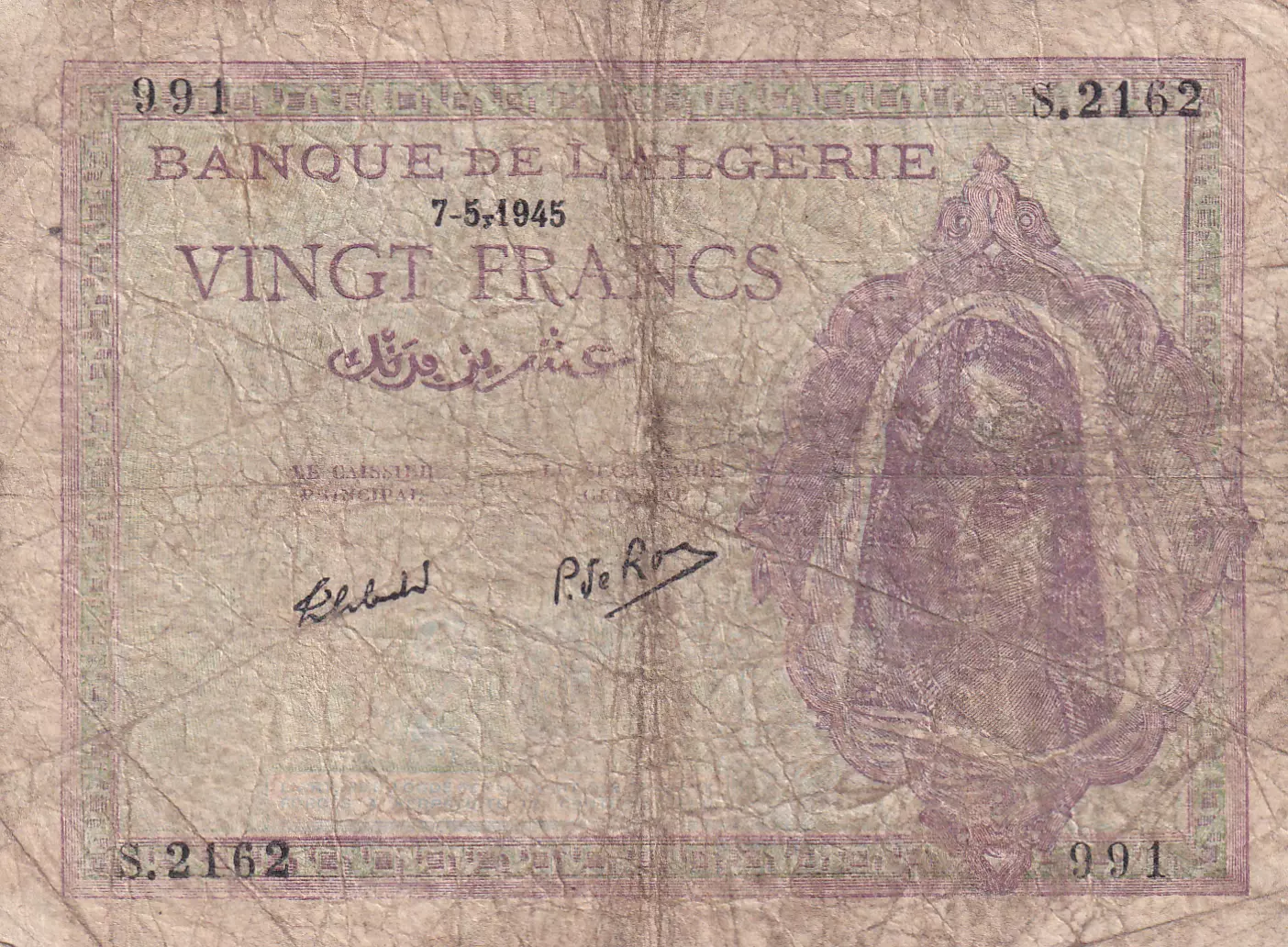 Home > > Algeria 20 Francs Young woman - 07-05-1945 - Serial S.2162