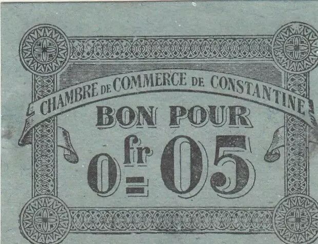 Home > World Banknotes > African Banknotes > Algeria > Algeria 5 Cents - Chambre de commerce of Constantine - 12-10-1915