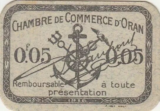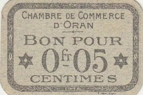 Home > > Algeria 5 Cents - Chambre de commerce of Oran - 1916