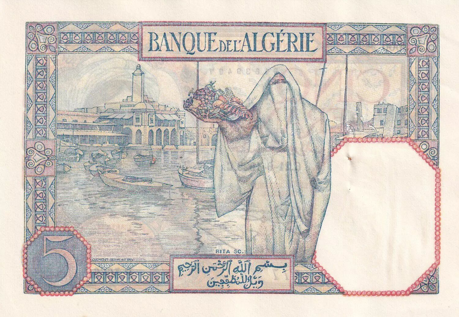 Banknote Algeria 5 Francs - Young girl - 21-06-1929 - Serial P.3666 - P.77a