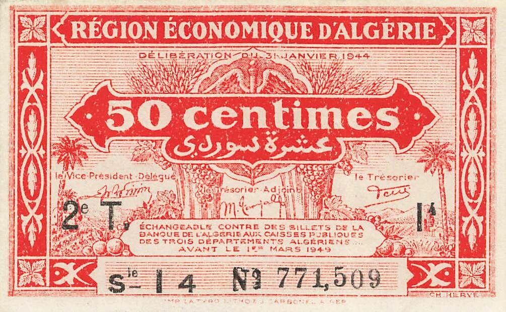 Banknote Algeria 50 Centimes - 31-01-1944 - Serial I4 - P.100