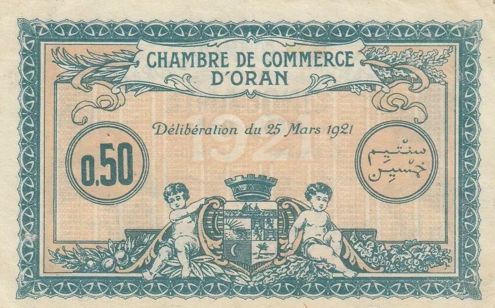 Home > World Banknotes > African Banknotes > Algeria > Algeria 50 Centimes - Chambre de commerce of Oran - 25-03-1921 - 780, 122