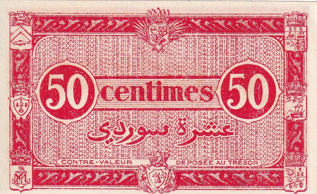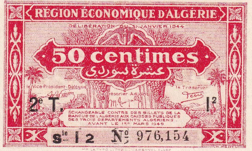 Home > > Algeria 50 Centimes - Région économique - 31-01-1944 - Serial I - P.100