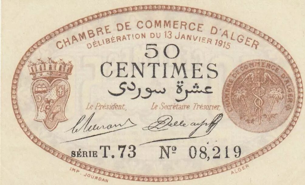 Home > > Algeria 50 Cents - Chambre de commerce of Alger - 13-01-1915 - Serial T.73