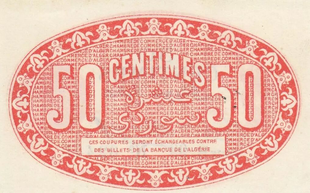 Home > > Algeria 50 Cents - Chambre de commerce of Alger - 22-06-1921 - Serial B.99